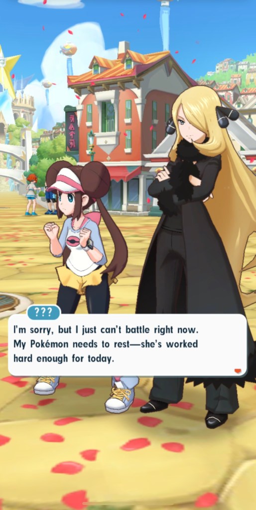 I did get excited that right away I was able to see Cynthia, the best Pokémon Champion, and Rosa. I loved playing the Unova region and Rosa was my favorite protagonist. I always admired her flare. Especially in the series.